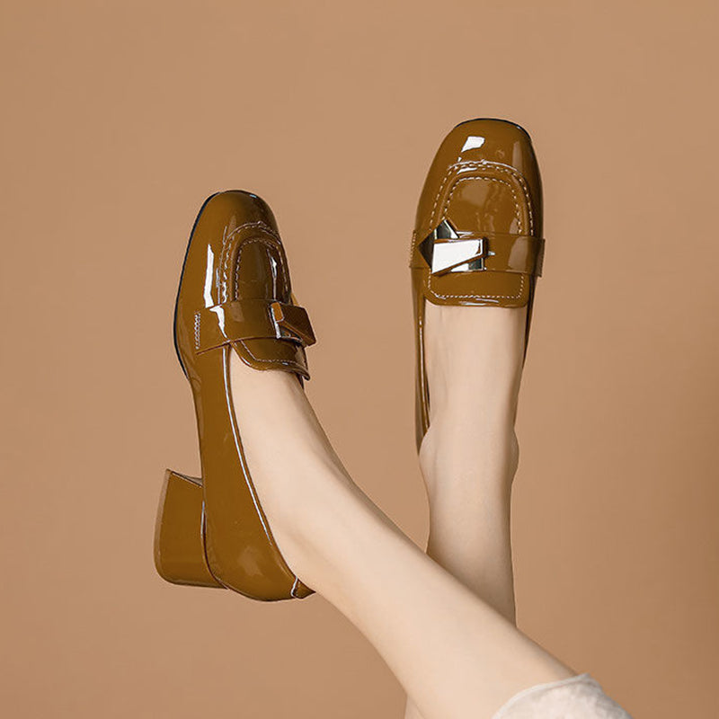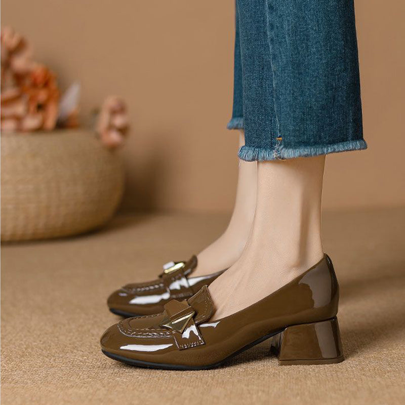 Charol de PU seleccionado, puntera ensanchada