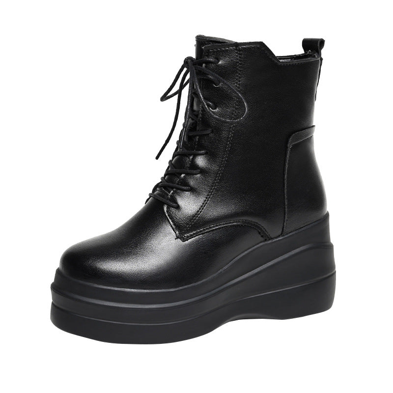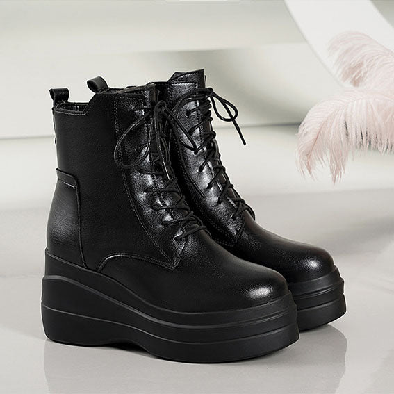 Botas cortas con tacón de cuña de cuero genuino de nuevo estilo